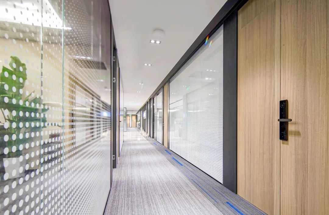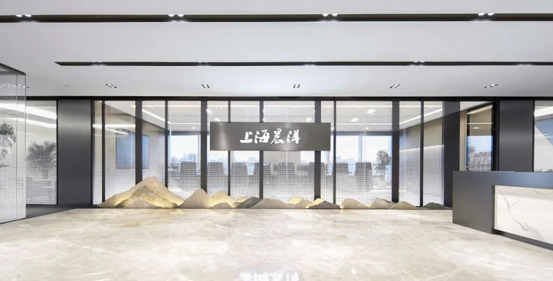 從正門(mén)進(jìn)來(lái)映入眼簾的就是上海晨洋四個(gè)大字,立于不銹鋼背板之上,兩側寬窄不一的豎條狀裝置即拉伸了層高的視覺(jué)感受,又把會(huì )議室和前廳區域分割開(kāi)來(lái),再加上以山霧為設計概念的玻璃貼,整體空間既不會(huì )顯得雜亂,又可以讓自然光線(xiàn)照進(jìn)來(lái),使得整個(gè)空間更有生氣。