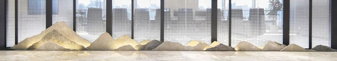 前廳區域從玻璃隔斷出來(lái)500mm的距離,上方用深淺冷暖兩種顏色對比強烈的石材進(jìn)行雕刻,背后又有光線(xiàn)在其中虛實(shí)結合,若隱若現,給人一種朦朧的感覺(jué)。在整個(gè)平面的規劃里,前廳左側為員工區和休閑區,右側是高管區域,是一個(gè)相對私密的空間。從高管區走過(guò)來(lái)可以看到石材近小遠大,也預示著(zhù)企業(yè)穩步上升,蒸蒸向上的寓意。